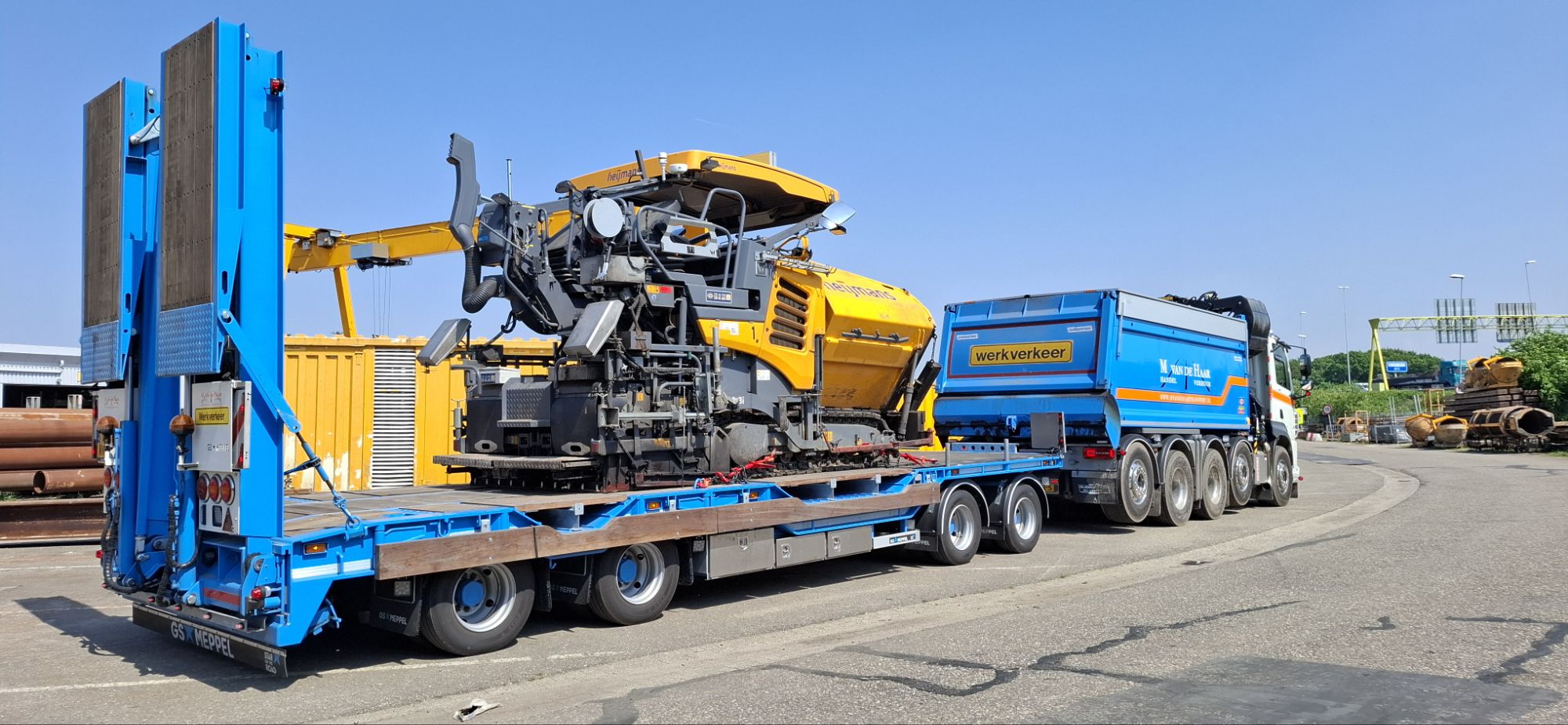Voor het transport van divers wegenbouwmateriaal, hebben wij de beschikking over setauto’s die diepladers van opdrachtgevers kunnen trekken. Maar ook met onze eigen (multifunctionele) dieplader kunnen de asfaltsets worden vervoerd.